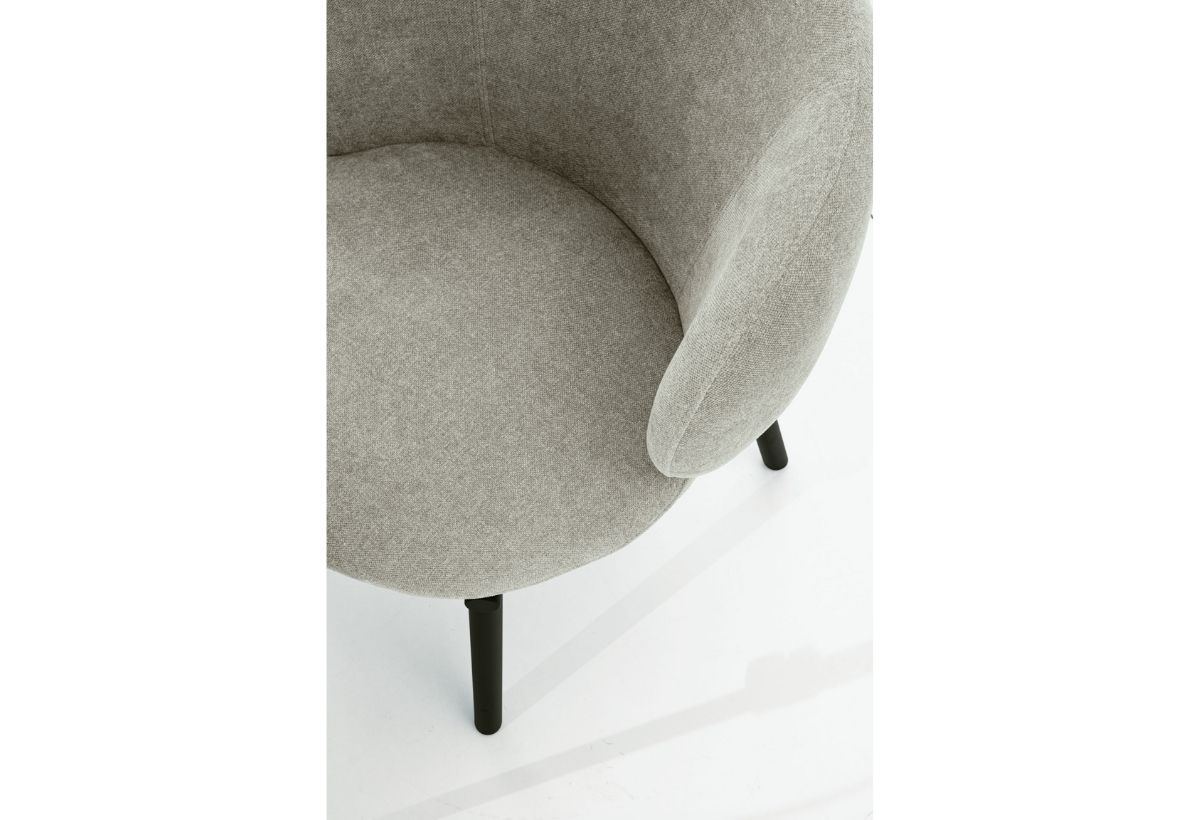 Poltroncina in stile giapponese con struttura in metallo verniciato e seduta imbottita. Disponibile con rivestimento in morbido tessuto Clean-Touch oppure nel nuovo tessuto Mellow Blend, soffice e resistente, che esalta il comfort della seduta.